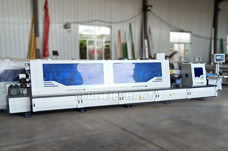 2、全自動封邊機具有:拋光2—拋光1—開槽—平刮—刮邊—跟蹤修邊—精修—粗修—齊頭齊尾—涂膠封邊—預銑。
