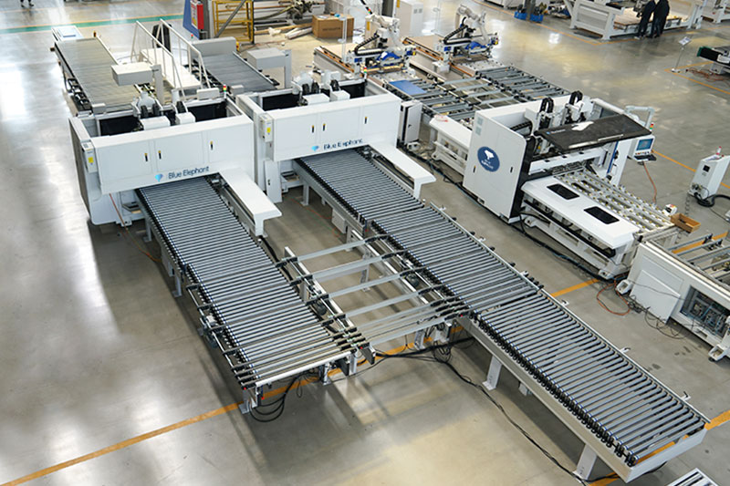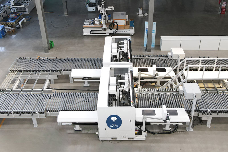 六面鉆雙機連線由兩臺數控六面鉆、定位機構、高清讀碼器、自動輸送線及智能化控制系統組成,可與封邊機、開料設備組成自動化生產線。